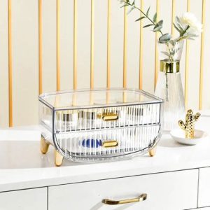 Organizer Storage Box Cosmetics Drawer Cosmetic Transparent Makeup Organizer Rack Waterproof Boxes Plastic Container Available In 2 Colors