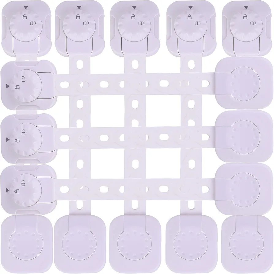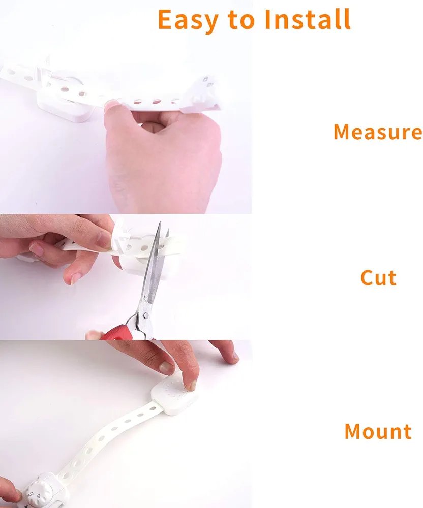 2-Piece white Child Safety Locks | Childproof Latches with 3M Adhesive (No Drilling) | Double Action Lock with Adjustable Strap | For Refrigerator Drawer, Oven Door, Window, Toilet Cabinet, Dishwasher