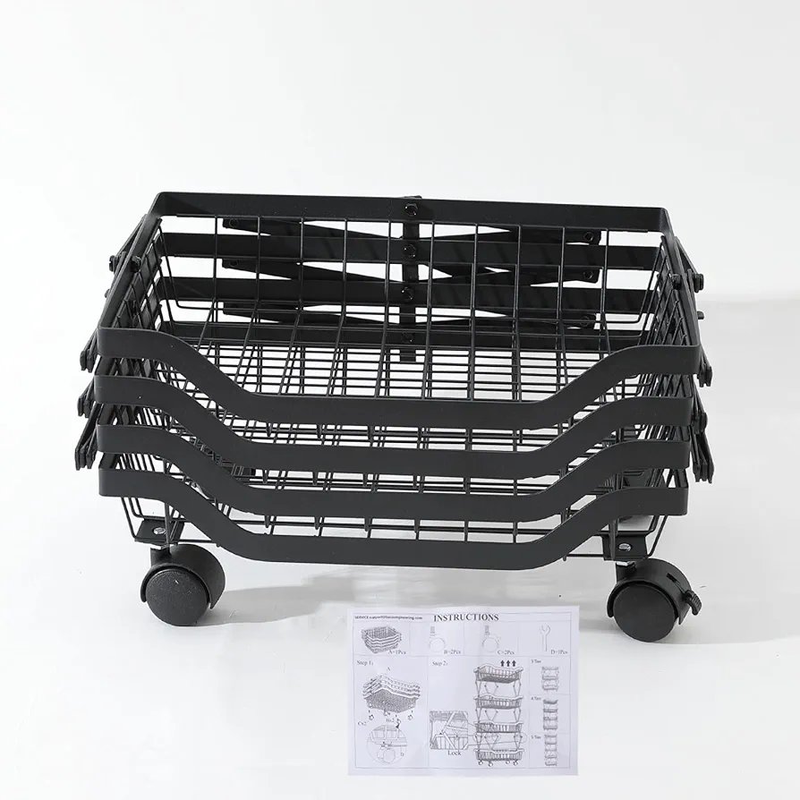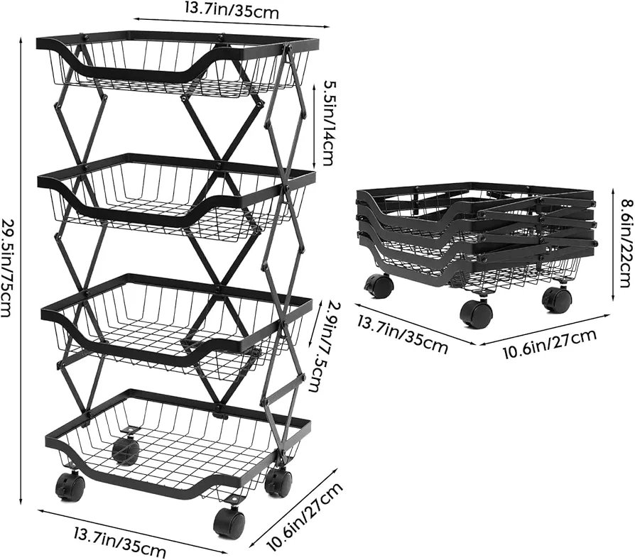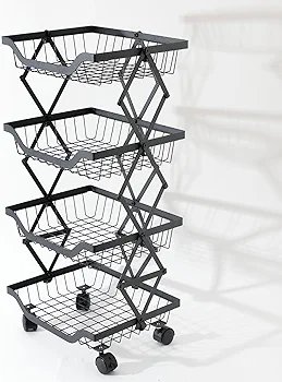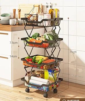 Collapsible Storage Organizer Baskets Layer | Kitchen Racks for Storage of Fruits & Vegetables | Foldable Storage | Kitchen Organizer Items and Storage | Black