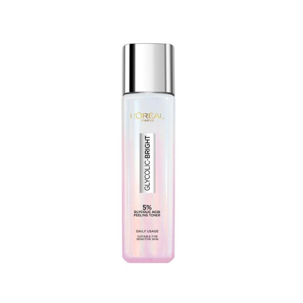 L’Oréal Skincare Laboratories developed Glycolic-Bright Glowing Peeling Toner formulated with 5% Glycolic Acid, the dermatologist gold standard for professional peels, formulated for optimal efficiency and safety every day. Clinically proven to reveal purified, fresh, and glowing skin. Tested by dermatologist on all skin tones. 5% Glycolic Acid – Our 1st High Concentration Toner. With the smallest molecular weight amongst all Alpha Hydroxy Acids, it penetrates deeply and gently exfoliates skin surface to help accelerate skin’s own renewal.