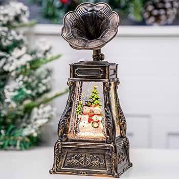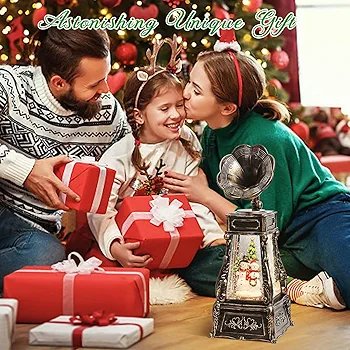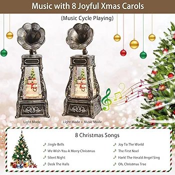 Lantern Swirling Glitter Phonograph with Christmas Tree Kids Snow Globe Lantern Lighted 6H Timer USB Battery Operated Snowglobe Home Christmas Decoration