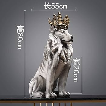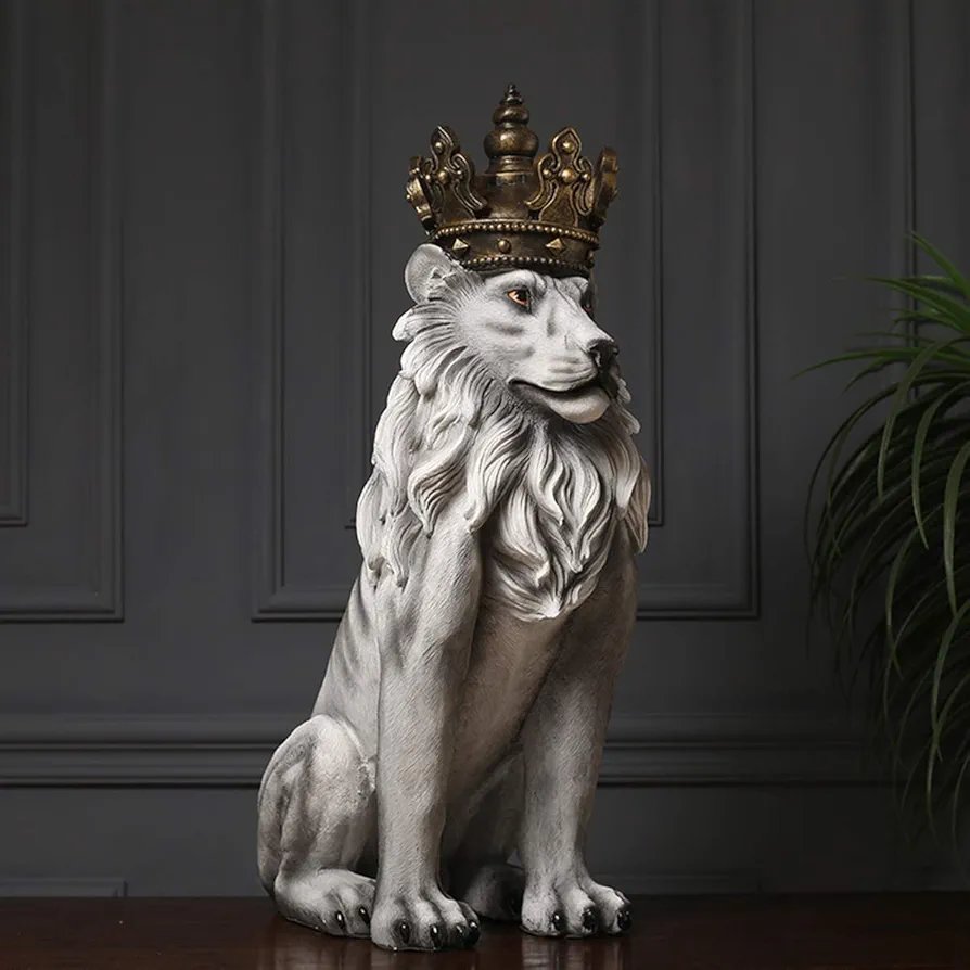 Resin Lion Statue with Golden Crown, King of the Forest Sculpture, Made of Resin, 31.5 Inches