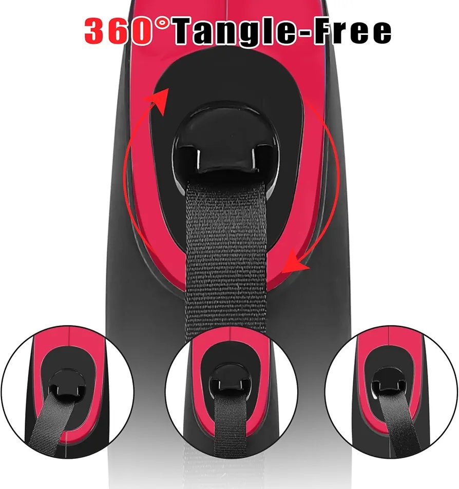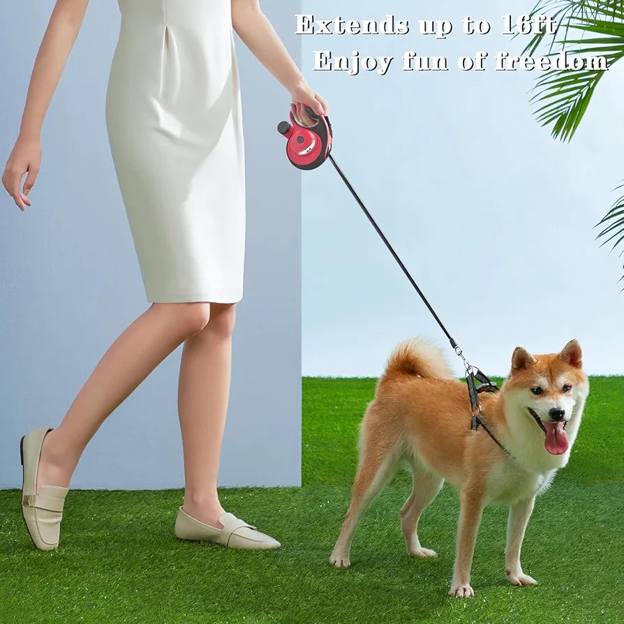 Retractable Dog Leash with Waste Bag Dispenser and Flashlight, 5m 30kgDog Leash for Small Medium Dogs up to 66lbs, One Button Break & Lock,360°Tangle Free, Soft Anti Slip Grip,Red