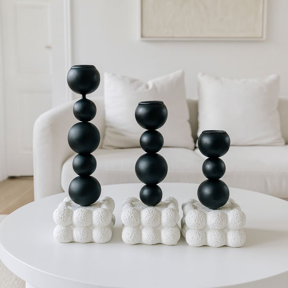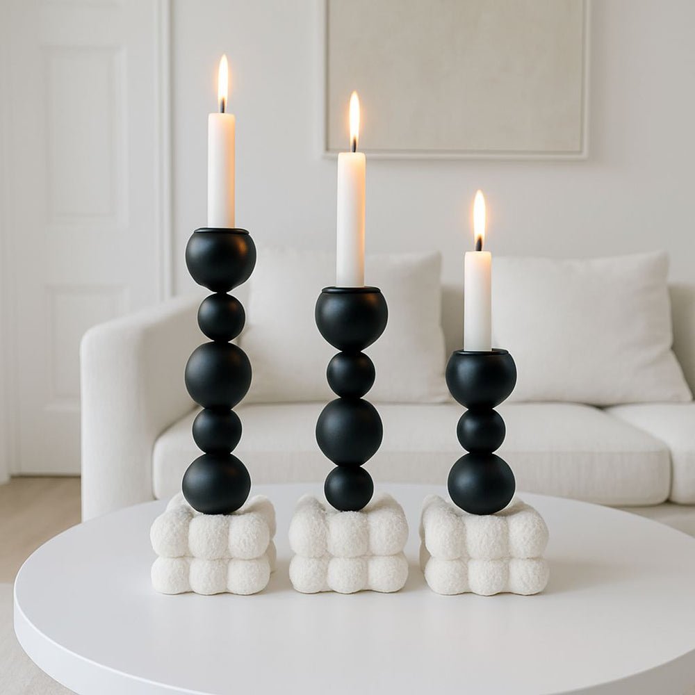 SCULPTURA LIGHT CANDLE STICK SET 3 PIECES BUBBLE